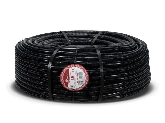 TUBO CORRUGADO ARTICULADO NEGRO 16MM 100M